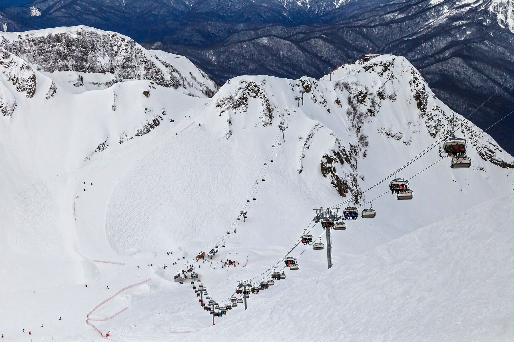 Именно в Сочи располагается Олимпийский объект с подготовленными трассами, считающимися самыми длинными в России: общая длина превышает 160 км. Данная протяженность складывается за счет трёх курортов: Роза Хутор, Газпром и Красная Поляна. Приезжая в данное место, лыжники могут насладиться крутыми склонами (с высотой до 1650 м) и развитой инфраструктурой.