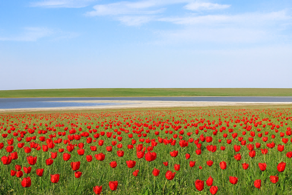 Часовая прогулка включает рассказ гида и автомобильный маршрут по асфальтированной дороге до самого важного места, полуострова тюльпанов. В группы собирается не более 20 человек. Стоимость поездки для взрослых с экскурсоводом составляет 550 рублей, без экскурсовода 250 рублей.